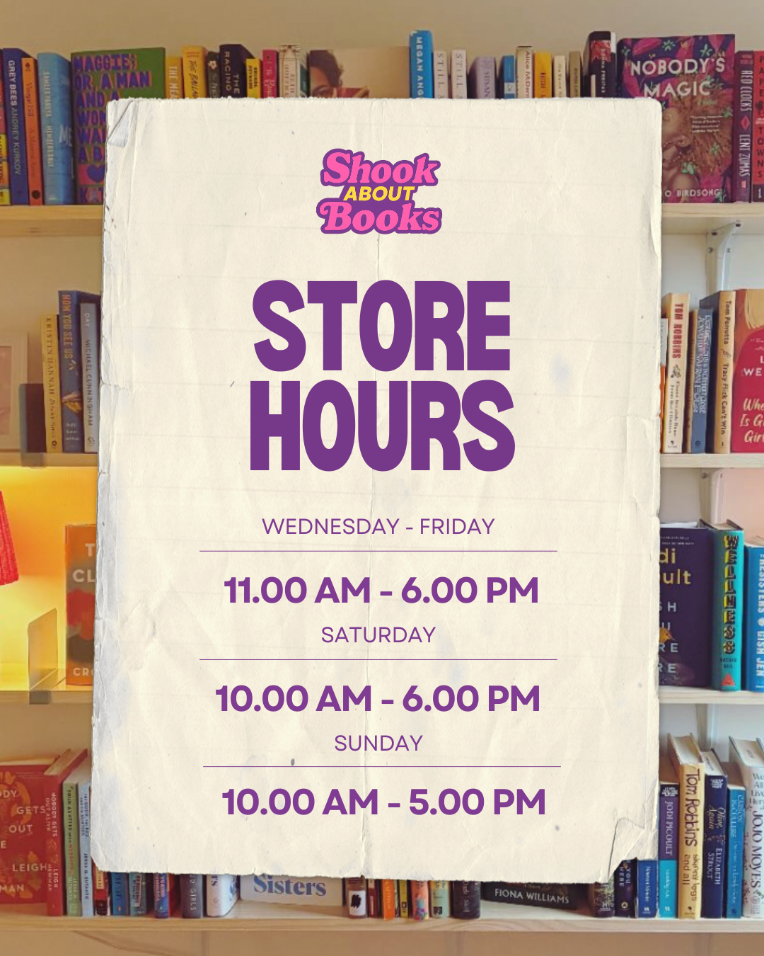 We're closed Mondays & Tuesdays so our books can nap.